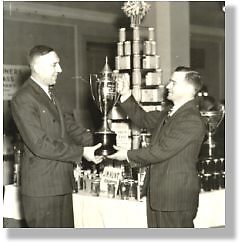 Duff Crerar (right), founder of Crerar's Honey Limited in 1914, is presented with the